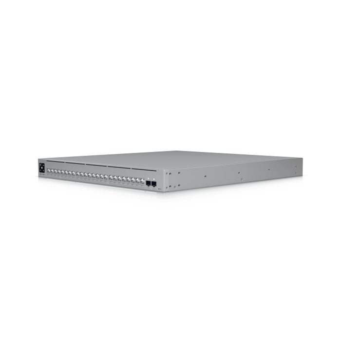 Professional-grade, 24-port Layer 3 Etherlighting PoE+++ switch with (16) 10 GbE, (8) 2.5 GbE, and (2) 25G SFP28 ports.